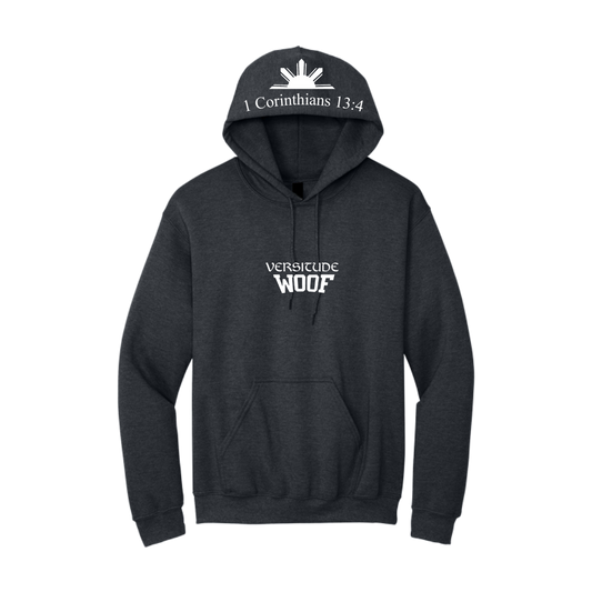 English Grey Woof x Versitude 1 Corinthians 13:4 Hoodie