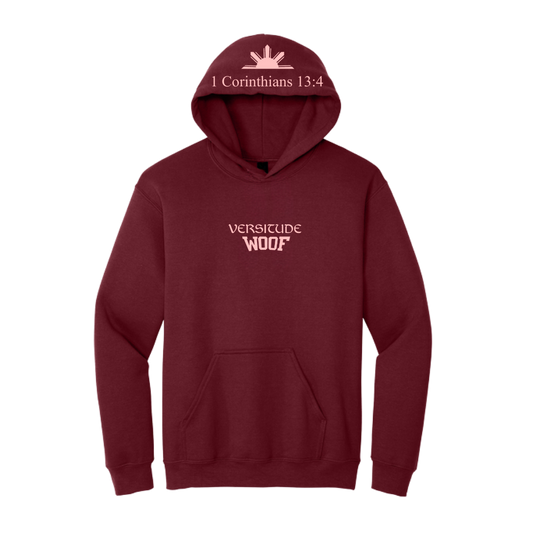 English Red Woof x Versitude 1 Corinthians 13:4 Hoodie